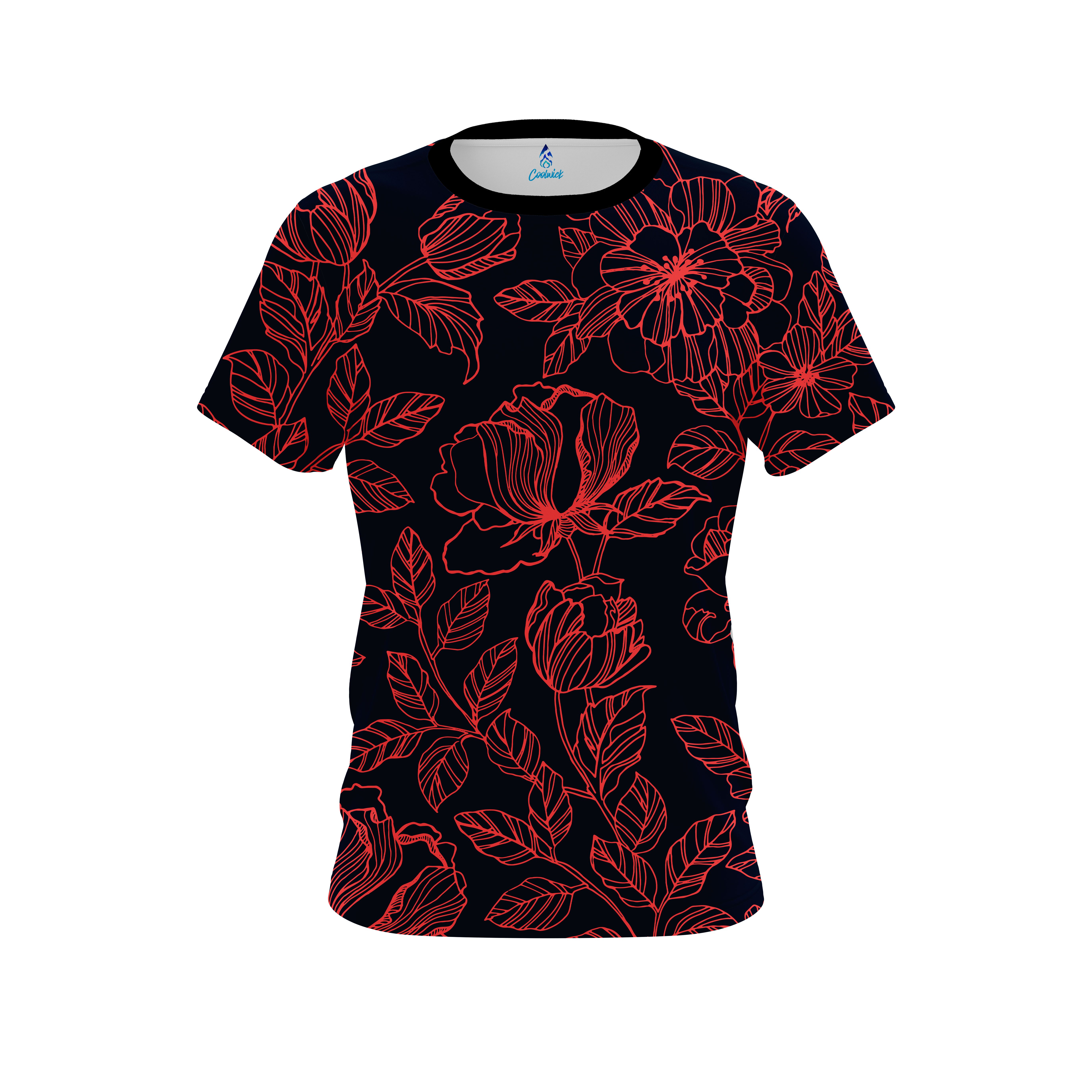 Plain Navy Red Flower Tattoo CoolWick Bowling Jersey
