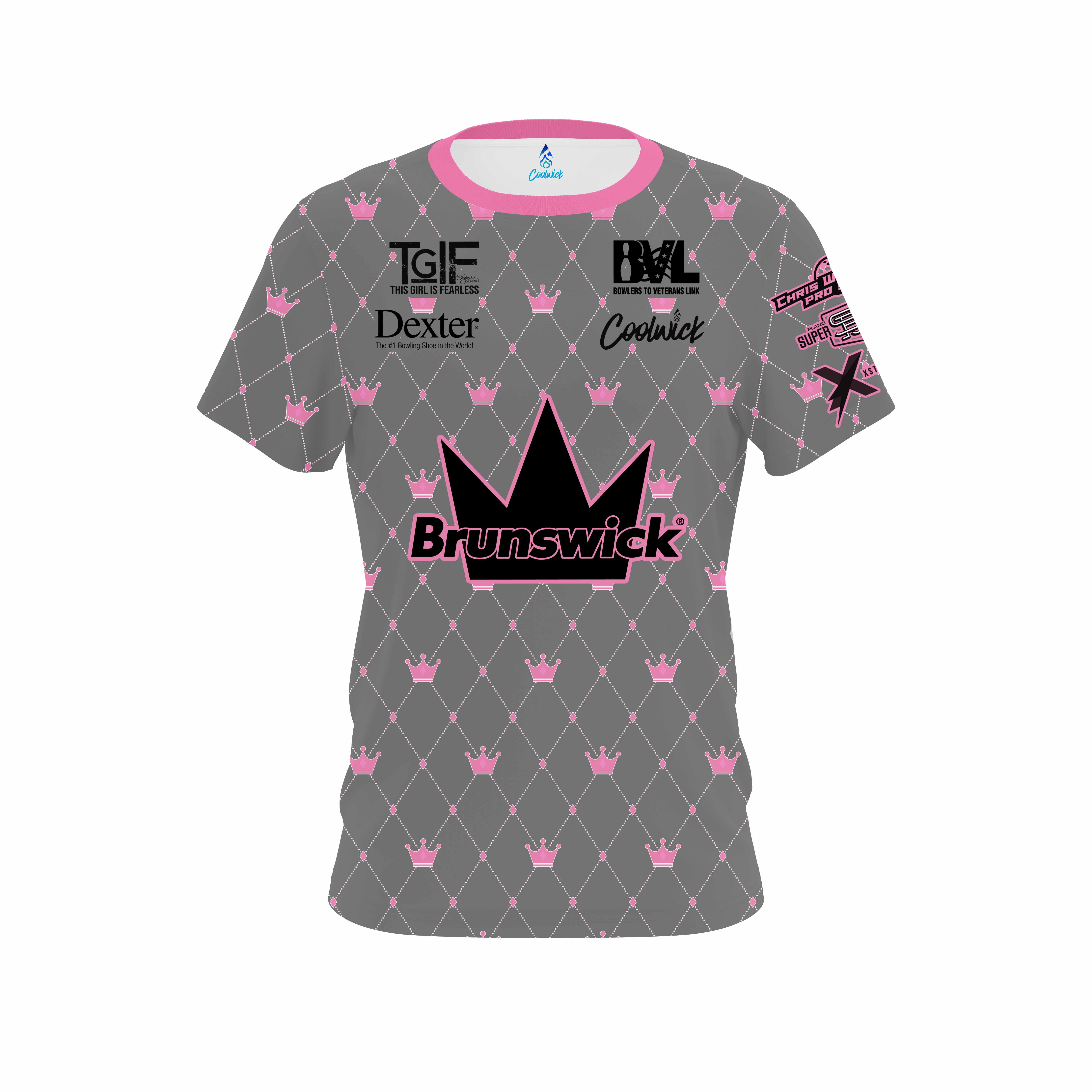 Stefanie Johnson Brunswick Pink Gray Crowns CoolWick Bowling Jersey