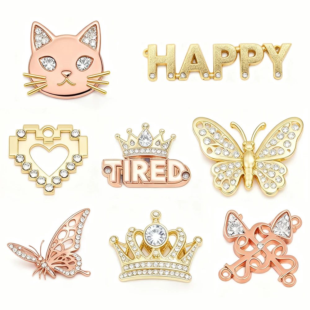JFRB122 Shiny Flower Gold Crystal Button Covers Button Removable No Sew Button Cover for Women Shirts